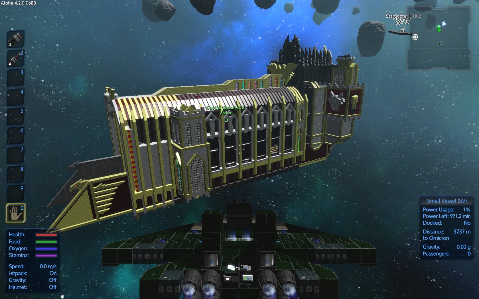 PS: А еще огромные корабли жрут по 1 бочке топлива в секунду - разоритесь :)